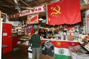 Parcheggio accanto a Piazza del Gesù. Mattinieri anche gli amici/ nemici. Lì le auto erano tutte blu ed i titolari erano appena usciti dalla Chiesa del Gesù. Dei Gesuiti. Messa e caffè. Il caffè invece lo prendevamo da Vezio, dietro via dei Polacchi. Lì altra Chiesa accanto al Bottegone. Una sezione per ogni campanile. Una costante del marcamento ad uomo tra DC e PCI. Il bar di Vezio era una sorta di Tabernacolo del PCI. Un Santa sontorum dove le foto della nostra Storia arredavano gli scaffali accanto ai gagliardetti delle delegazioni dei Paesi dell’ Est. Ed al mitico Che. Il tempo di accingermi alla tazzina e vedevo entrare i dirigenti più anziani, il giovane D’ Alema, i compagni della Vigilanza. Forse quelli che son rimasti di più nella mia memoria.