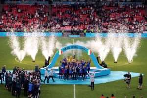 L’Italia sconfigge a Wembley l’Inghilterra ai rigori e, dopo 53 anni, diventa campione d’Europa nel torneo per nazioni, battendo l’unica nazione che europea non è. Dopo la Brexit molti inglesi sognavano di infliggere un ennesimo sgarbo ai continentali, e con più piacere agli italiani che la sorte gli aveva mandato, ma nella notte dei miracoli di dalliana memoria gli azzurri hanno avuto più nervi saldi dei biancocrociati. Passati in vantaggio al secondo minuto del primo tempo, con l’unico loro tiro di tutta la partita, gli inglesi sono stati rimontati da una scarpata di Leonardo Bonucci nel secondo tempo e condannati dalle manone di Gigio Donnarumma, vero eroe della serata, che, dopo gli inutili supplementari, hanno parato il rigore decisivo. Per la parte calcistica va detto che gli inglesi non sono apparsi gran cosa. Coriacei, squadra ben assemblata e messa in campo, ma nel complesso nulla di eccezionale. Noi pure nella finale londinese non abbiamo brillato, ma nel complesso abbiamo ampiamente meritato la vittoria perché il boccino lo abbiamo tenuto sempre in mano noi e se non siamo riusciti a chiuderla prima questa finale è perché le nostre punte, ancora una volta, non hanno brillato. Le vere finali sono state quelle che abbiamo giocato e vinto prima, vale a dire i match contro il Belgio e poi contro la Spagna. Lì si che abbiamo visto il grande lavoro fatto da Roberto Mancini: la sua è una Italia con poche stelle ma con molti buoni giocatori, arrivata a vincere la coppa continentale proprio grazie all’ottimo lavoro fatto dal Ct e dal suo staff. Mancini è infatti il vero protagonista di questa vittoria storica. Suo è il merito di aver saputo selezionare e costruire un gruppo vincente, suo il merito di avergli dato un gioco efficace, costruito intorno ad una super difesa, ma anche un’anima aperta e compassionevole. Il suo abbraccio con lacrime al “gemello” Gianluca Vialli è un gesto bellissimo, di grande umanità e amicizia che resterà ben impresso nella storia non solo del calcio. Così come emblematico è stato il trattamento riservato a Spinazzola, il compagno caduto per infortunio ma trasformato subito dal tecnico e dai giocatori in vessillo di coesione.