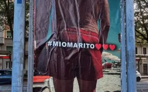 Alla base dell’opera Mio Marito comparsa a Torino e realizzata dallo street artist Andrea Villa c’è una tensione netta: mettere in discussione il doppio standard di genere che continua a permeare la nostra società. L’idea nasce in risposta alla recentissima vicenda legata al gruppo Facebook Mia Moglie, dove migliaia di uomini condividevano foto intime delle proprie compagne senza consenso, spesso accompagnate da commenti sessisti. L’artista ha scelto di invertire lo sguardo raffigurando uomini in mutande davanti allo specchio con una performance urbana che mette in scena la discrepanza tra libertà digitale e responsabilità etica ed obbliga il pubblico a confrontarsi con queste immagini: chi realmente subisce il danno e chi lo perpetua?