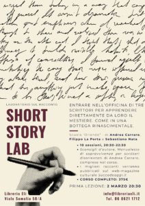 Entrare nell’officina di uno scrittore, osservare da vicino come nasce un racconto, capire dove si inceppa una frase e perché un personaggio, a volte, non respira. È questa l’idea alla base dello “Short Story Lab”, il laboratorio sul racconto che prenderà il via il 2 marzo alle 20.30 alla Libreria Eli, in viale Somalia 50/A, a Roma.