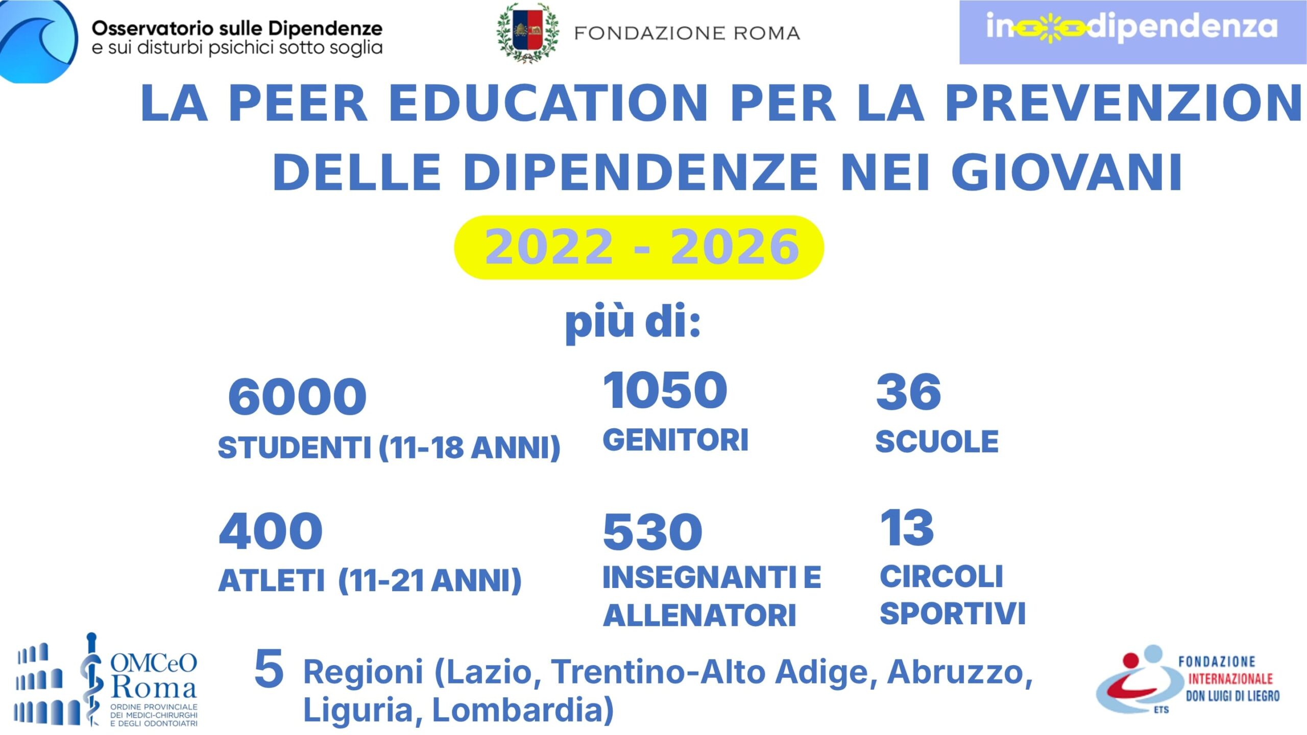 Le campagne di prevenzione degli ultimi decenni sono state basate su messaggi di terrorismo psicologico oppure di significato moralistico. Entrambe queste possibilità sono perdenti. Occorre, come stiamo facendo negli ultimi cinque anni con il supporto di OMCeO Roma (Ordine dei Medici-Chirurghi di Roma e Provincia), spostare l’attenzione sull’utilizzo della Peer Education e su una modalità di interazione orizzontale – con e tra i ragazzi – e mai verticale, ossia mai la modalità del professore in cattedra che tiene la lezione dall’alto. Inoltre, occorre effettuare cicli di incontri e non incontri singoli, in modo tale da aiutare i ragazzi a promuovere un percorso graduale di conoscenza, consapevolezza ma soprattutto abilità sociali che aiutano ad abbassare le difese psicologiche e ad aprirsi al confronto con un pensiero critico. (Foto)